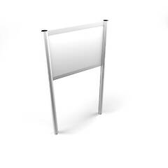 Der Aufsteller wird Ihnen als beschriftungs- und montagefertiger Bausatz geliefert, alle Klemmverschraubungen sind eingesetzt. Sie können die Säulen einbetonieren oder mit Hilfe von Fußplatten auf vorhandene Gründe aufschrauben.
