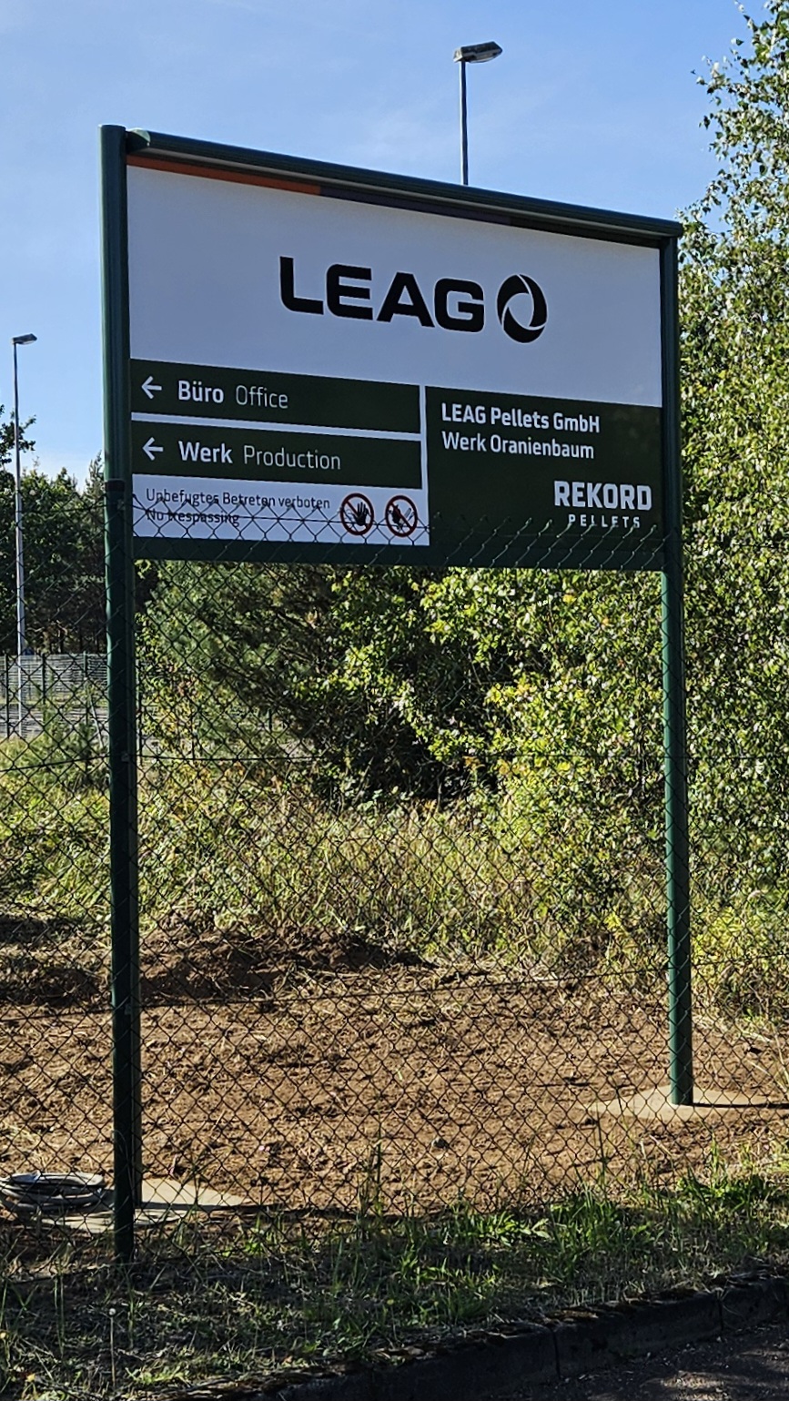 Der Aufsteller wird Ihnen als beschriftungs- und montagefertiger Bausatz geliefert, alle Klemmverschraubungen sind eingesetzt. Sie können die Säulen einbetonieren oder mit Hilfe von Fußplatten auf vorhandene Gründe aufschrauben.