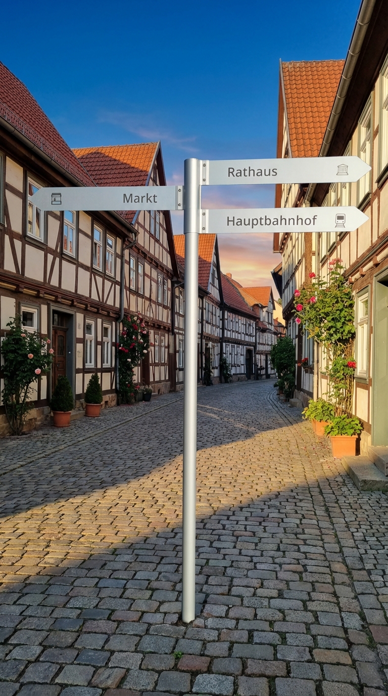 Unsere Lösung für ein leichtes und zugleich flexibles Aufsteller- oder Wegweisersystem ist Flex. Mit Hilfe von Schellen in verschiedenen Höhen, lassen sich Fahnen oder Platten verschiedener Stärken klemmen.