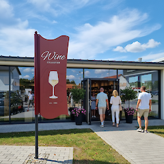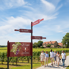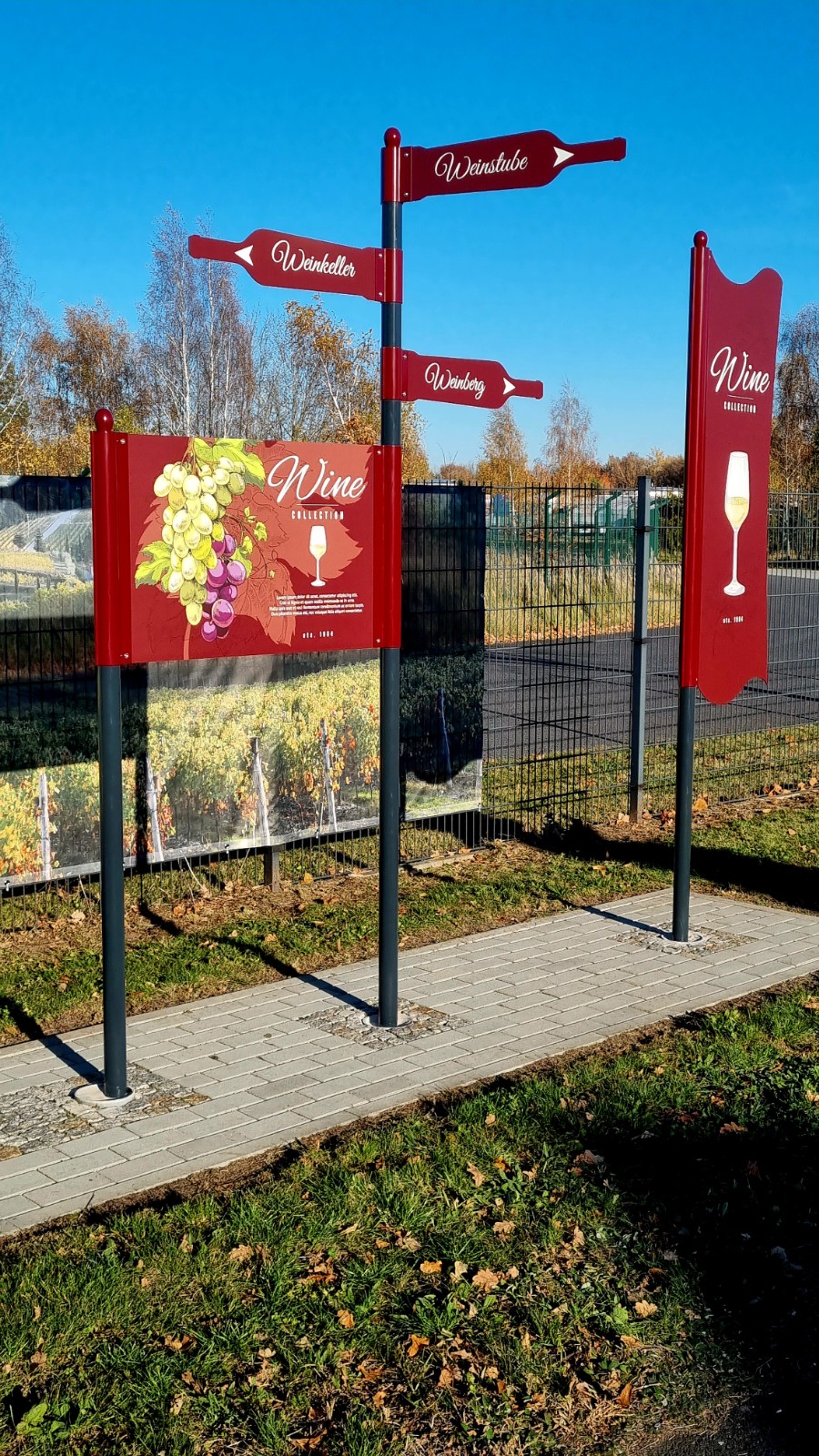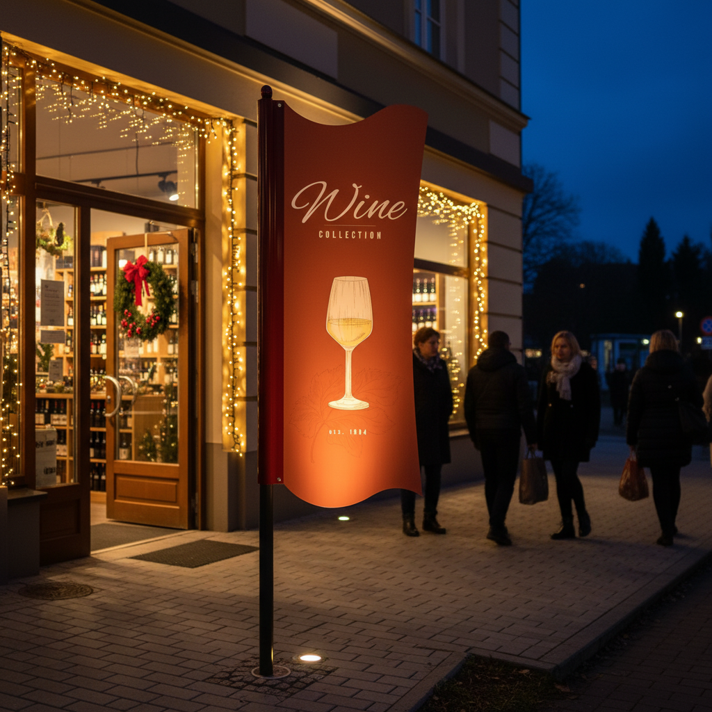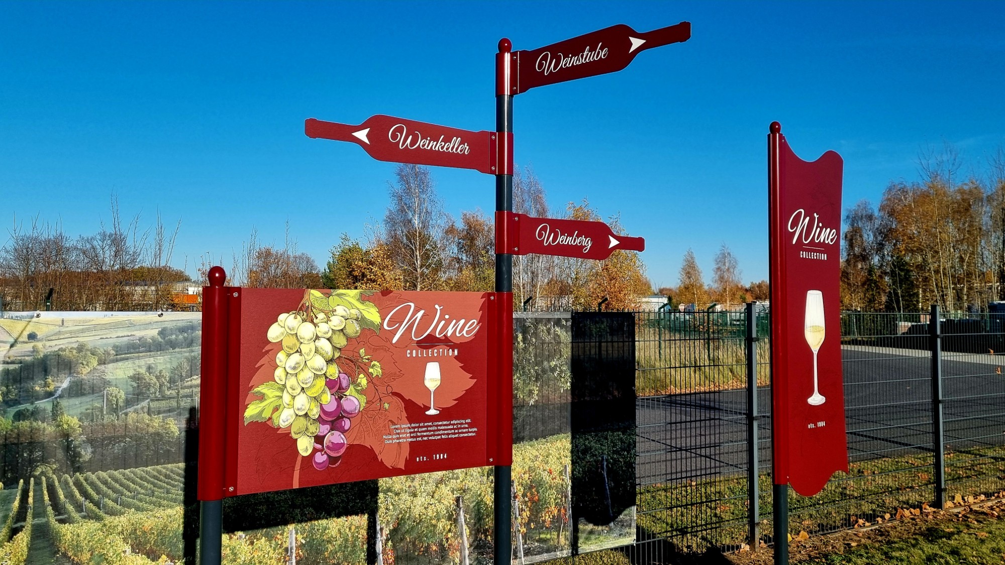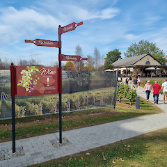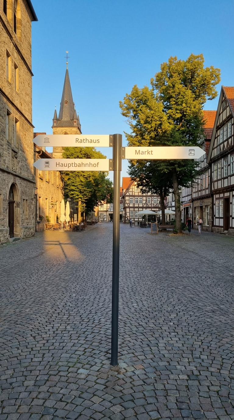 - Kombination von Aufstellern und Fahnenwegweisern