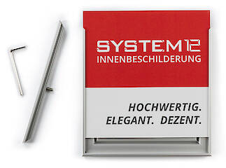 Mit dem SYSTEM 12 können alle Anforderungen an eine moderne Innenbeschilderung erfüllt werden.