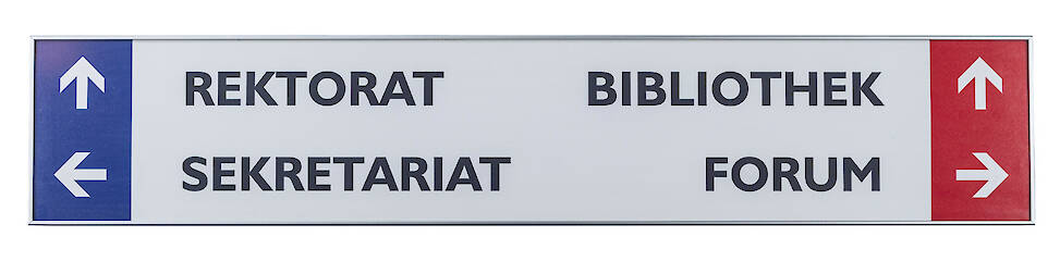 System mit schmalen, umlaufenden Rahmen. Gibt der Innenbeschilderung von Gebäuden eine dezente und elegante Note. Die ausgeklügelte Rahmenbauweise des Schildes sorgt für einen sicheren Einlegerwechsel.