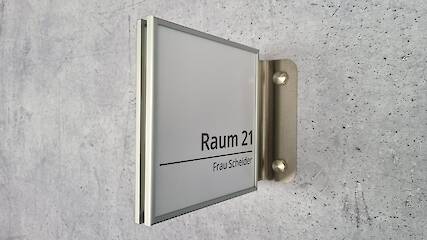 Ein moderner und gleichzeitig dezenter Rahmen wird durch die Grundplatte aus Aluminium oder Stahl stabilisiert. Die Türschilder und Wegweiser sind einfach im Handling und bieten dabei durch drei mögliche Farben für jede Anforderung die passende Lösung.