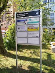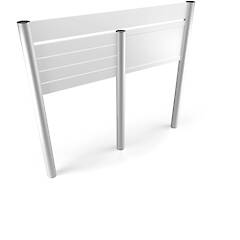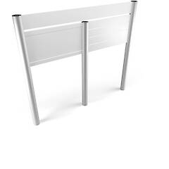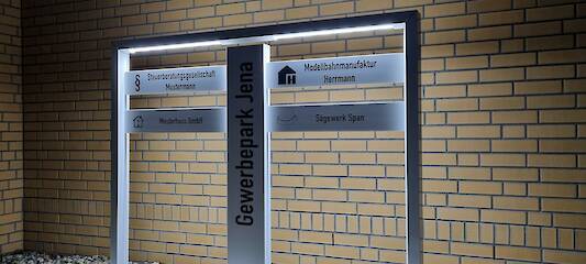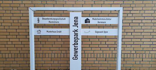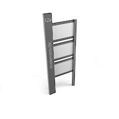 Mit verschiedenen Säulenformen, Textpaneelen und Zusatzprofilen sowie zusätzlichen Schildmaterialien aus Aluminium, PVC, Acryl und Lochblech, können Aufsteller und Wandschilder gestaltet werden.
