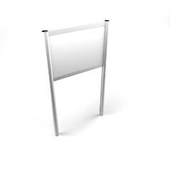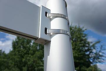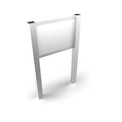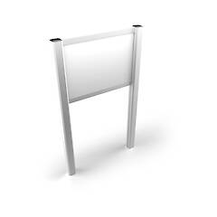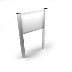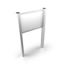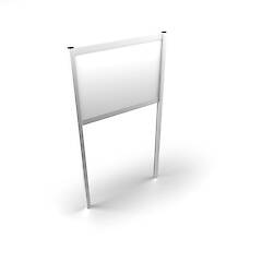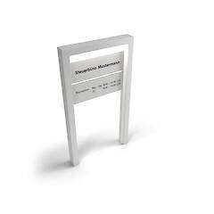 Der Aufsteller wird Ihnen als beschriftungs- und montagefertiger Bausatz geliefert, alle Klemmverschraubungen sind eingesetzt. Sie können die Säulen einbetonieren oder mit Hilfe von Fußplatten auf vorhandene Gründe aufschrauben.