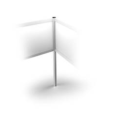 Die Wandschilder werden mit Montageplatten unsichtbar an der Wand befestigt. Die Textpaneele sind beidseitig beschriftbar.