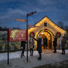 - Kombination von Aufstellern und Fahnenwegweisern