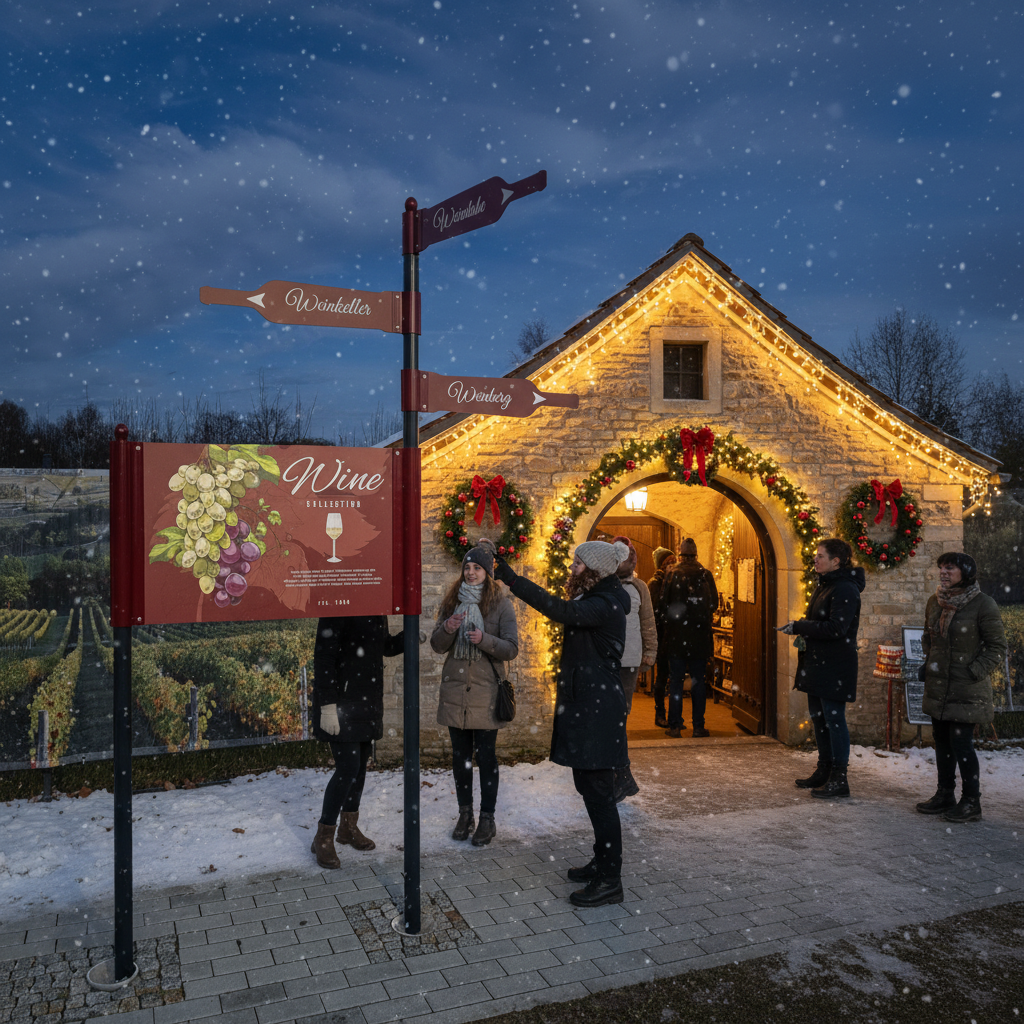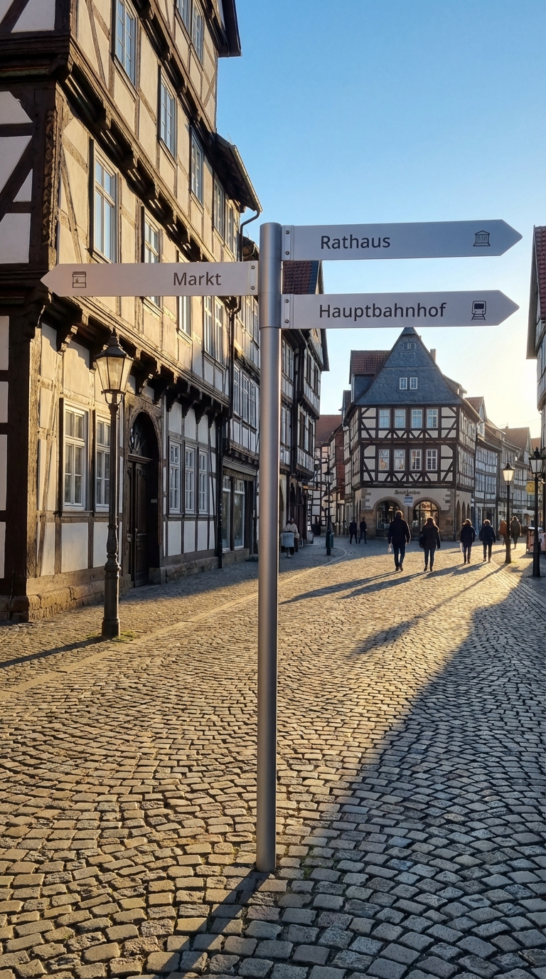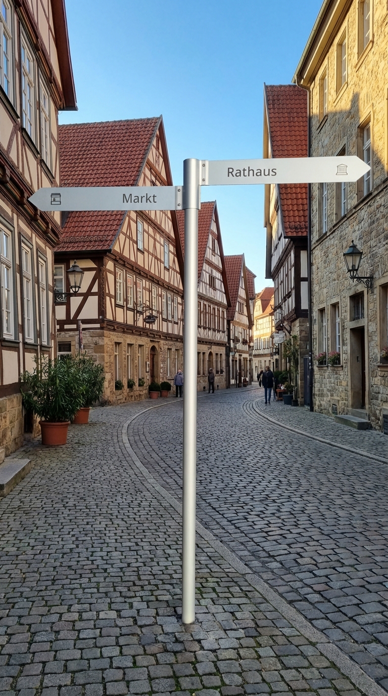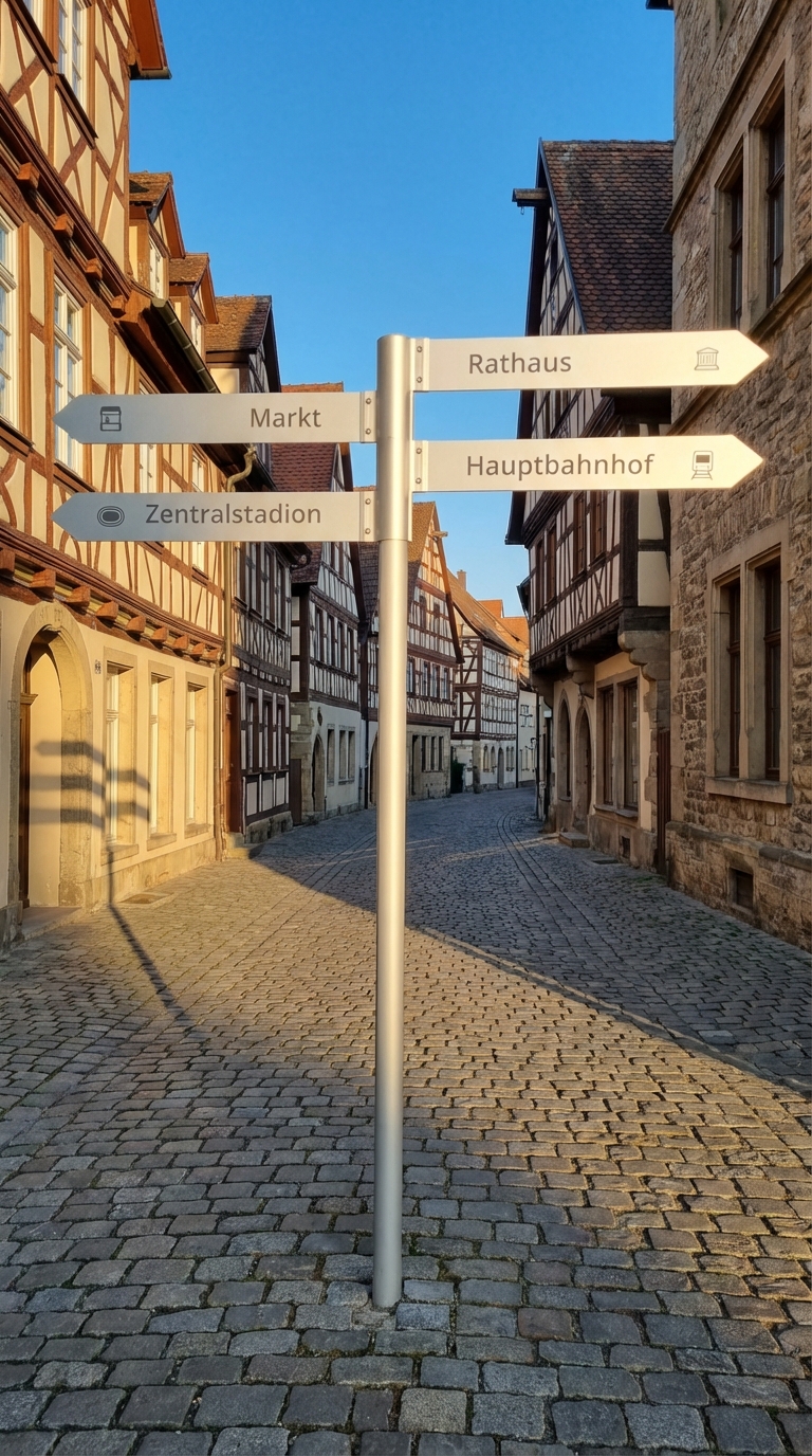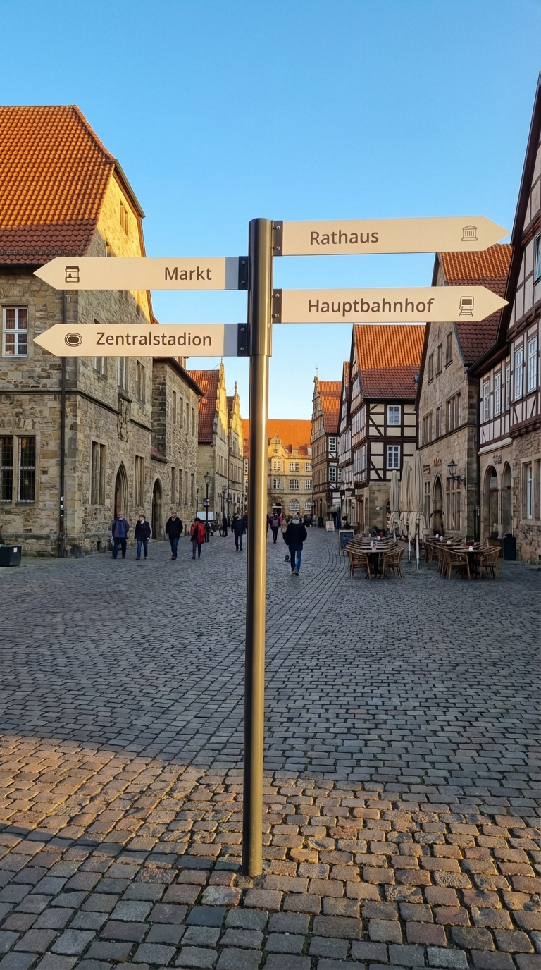 - Kombination von Aufstellern und Fahnenwegweisern